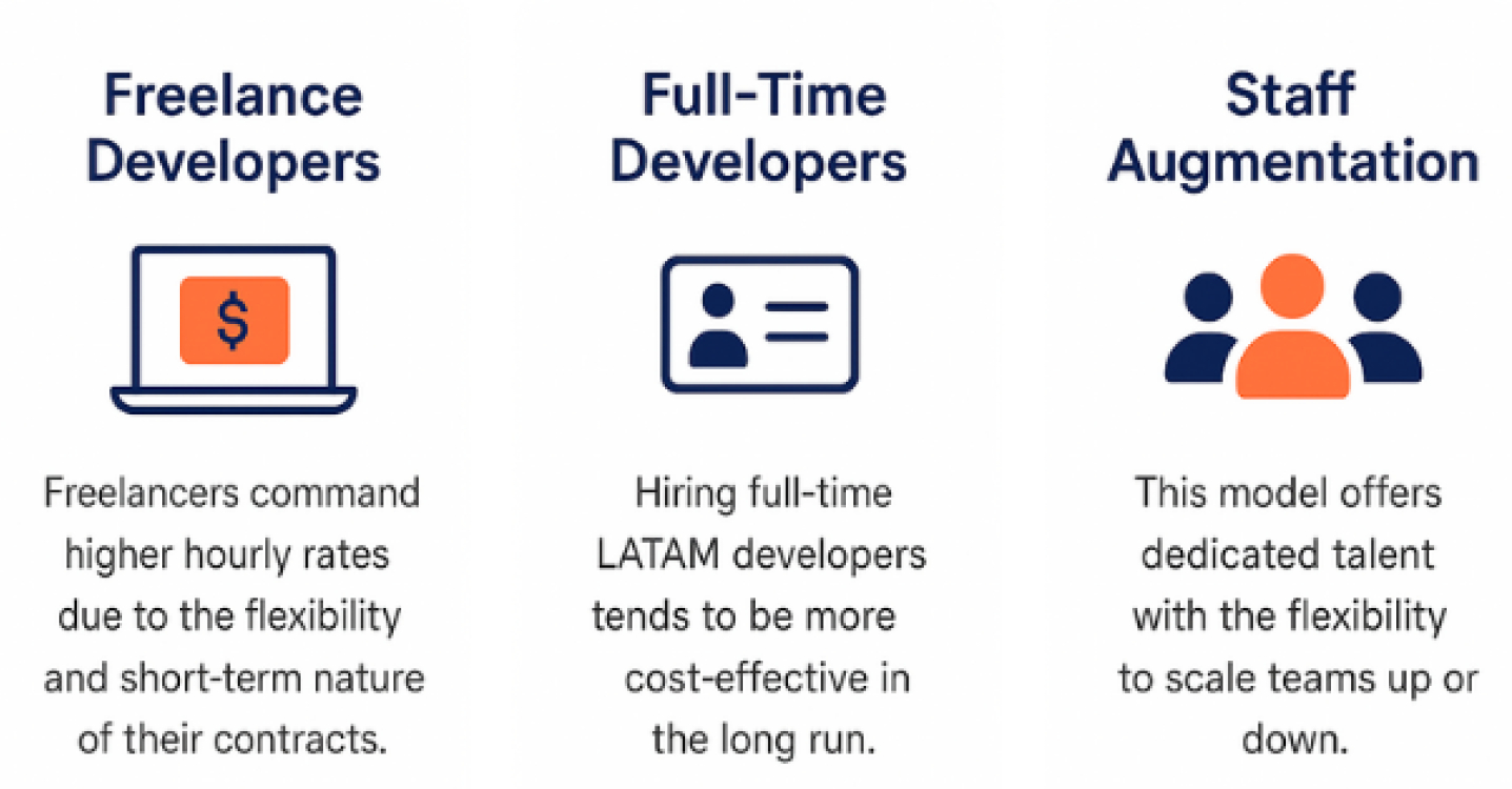 The cost of hiring a developer in LATAM depends not just on experience or location, but also on the engagement model. Here’s how freelance and full-time models typically compare: