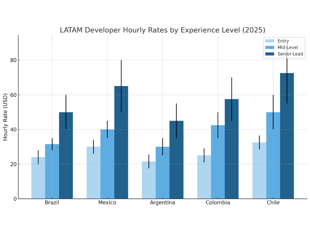 LATAM Developer Hourly Rates by Experience Level (2025)